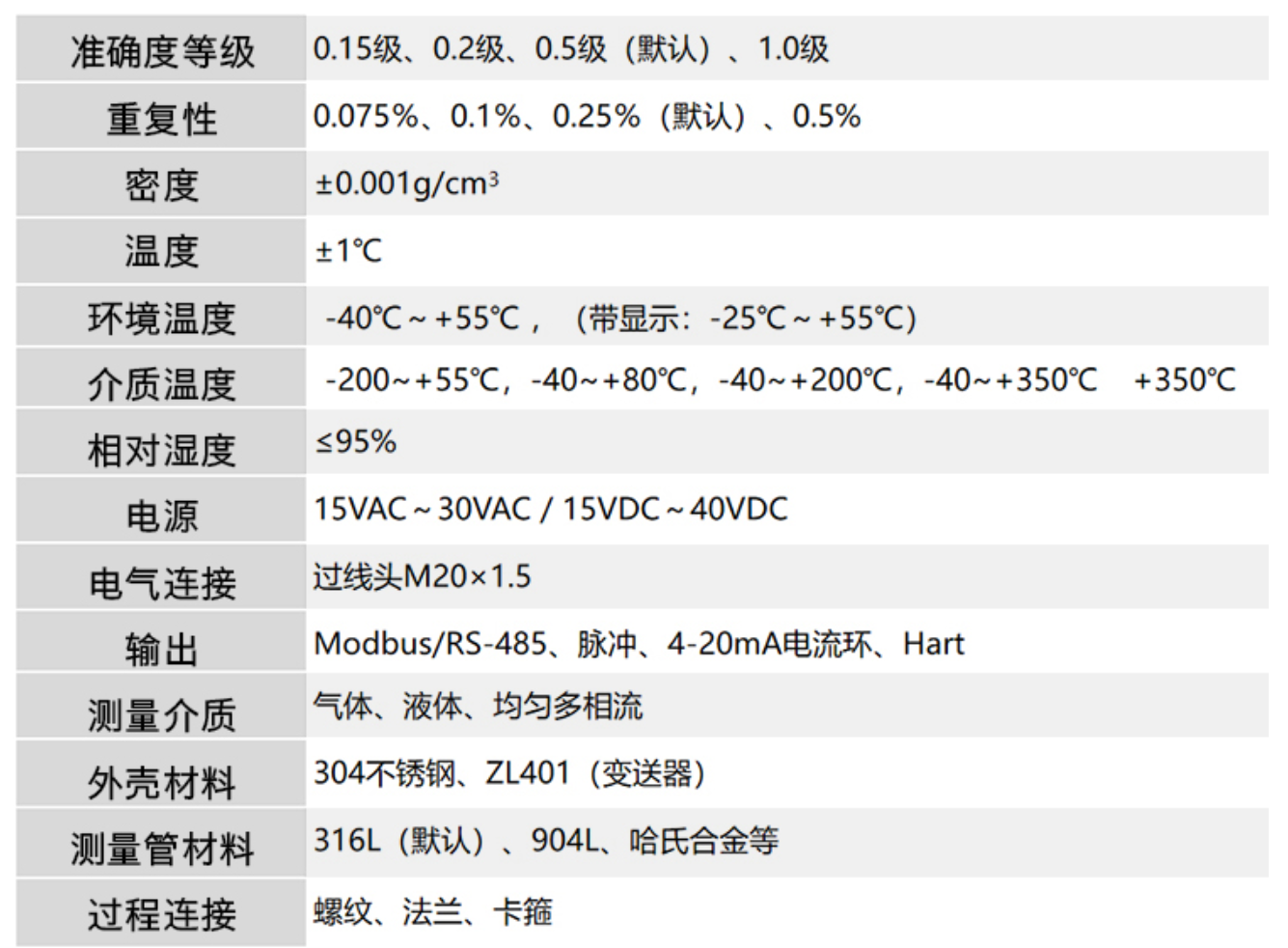 科里奥利质量流量计可直接测量流体的质量流量,测量结果不受介质密度、温度、压力、流速分布等特性的影响,具有测量精度高、稳定性好、使用方便、维护量小、通讯功能强、可实现多参数测量等特点